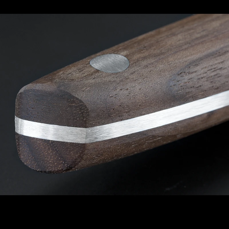 Due Cigni uses German 4116 X50CrMoV15 stainless steel which will retain an edge very nicely. The handle is Walnut wood which has a lovely feel and attractive grain.