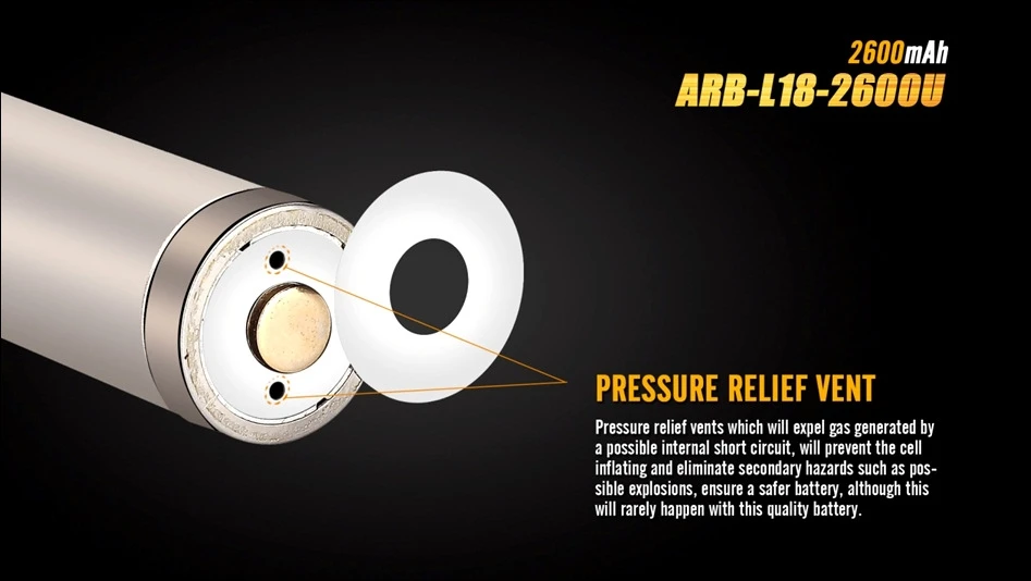 The Fenix ARB-L18-2600U 18650, 2600mAh lithium – ion battery is specifically designed for high intensity led illumination use and is the perfect companion for all current Fenix 18650 powered lights. The 2600U is a highly versatile battery that can be charged in a regular Li-ion charger or, for those customers who already have a charger with Micro USB lead such as a mobile phone charger, the micro USB can be plugged directly into the battery, saving the expense of an additional charger. The Fenix ARB-L18 2600U battery even features its own built-in LED indicators for charging / charged status.