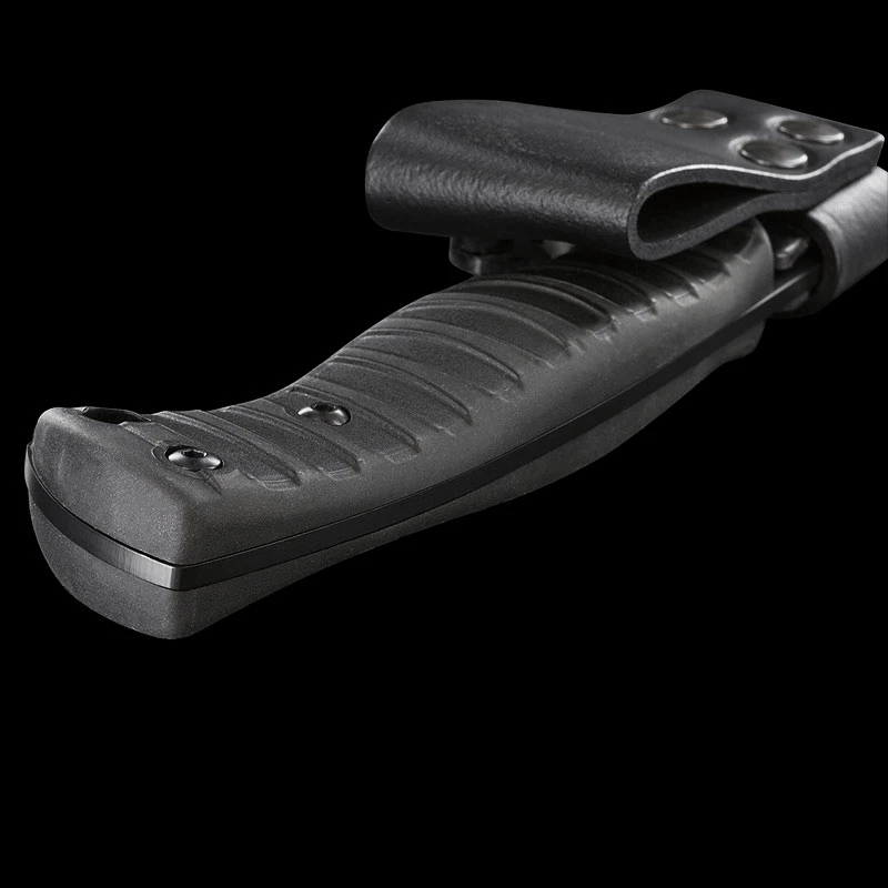 The Fox Jungle Latin machete has a generously sized 38cm long, 4mm thick blade with a black coated, non-reflective covering. It is made using Bohler N690Co steel which is a hard stainless steel right at home to long periods of hard use.