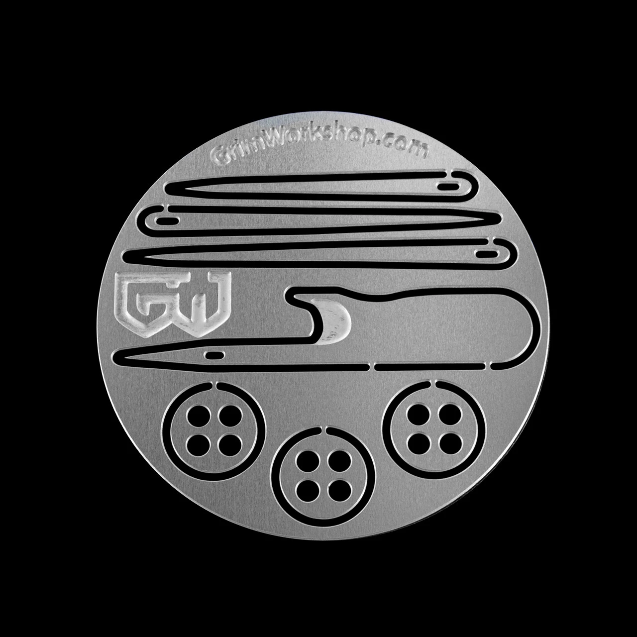 The Grim Workshop Roundabout Sewing and Repair Kit is a small coin-sized hand sewing kit. This little sewing kit is palm-sized, and just 1mm thick so it’s ultra-compact construction means it’s ready to go just about anywhere. Complete with a small awl, seam ripper, sewing needles, and buttons it’s pretty much got everything you need to perform basic repairs, as well as general sewing tasks. It’s the perfect survival kit accessory.