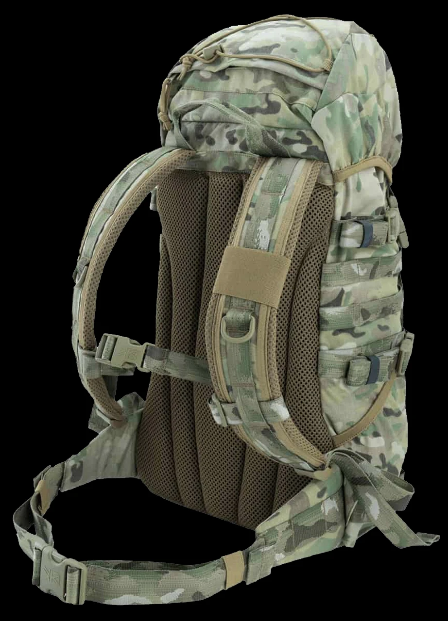 The MOLLE webbing allows this pack to be modular. The main compartment offers approximately 30l of storage, but additional pouches can be added using the MOLLE webbing. Pouches such as the Large Utility Pouch, the IA Medical Pouch and the Roll-Up Dump Pouch are all worthy additions to the Predator 30.