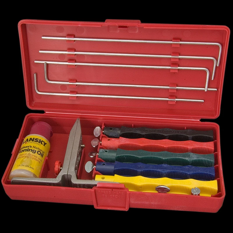 The Lansky Knife Sharpening System provides a simple easy to use way to produce a fine edge on practically any knife. Lansky Knife Sharpeners utilize an innovative clamp and honing stone guide to assure an exact stone-to-knife angle. You can select from four different sharpening angles.