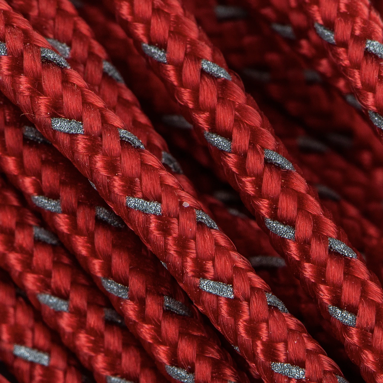 Lawson Equipment Glowire combines 3M Scotchlite reflective yarn with High Tenacity Polyester. So not only does it reflect light and shine in the dark but it is also extremly strong featuring a 114kg breaking strength.