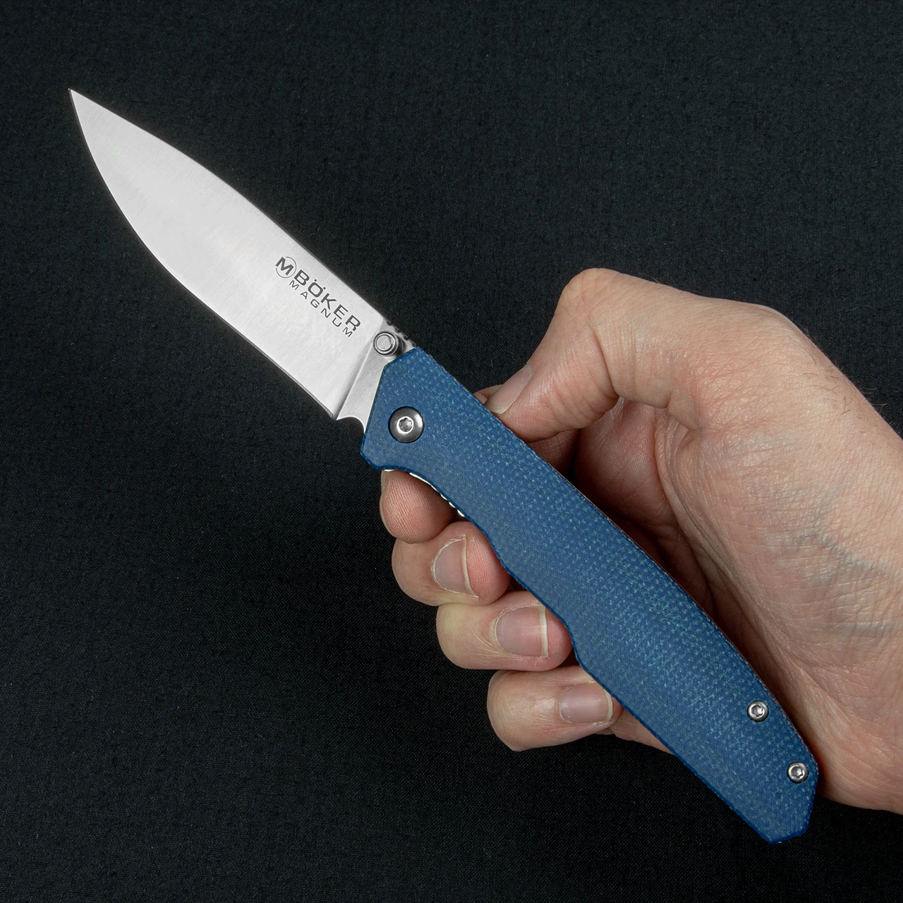 The Magnum Deep Blue Canvas neatly encapsulates all that is the best of Magnum, superb quality at a very reasonable price. For this price, you get a very solid blade made from 440A stainless steel with ambidextrous thumb studs. It locks firmly into place with a precision linerlock making it a great candidate for your working day. Â