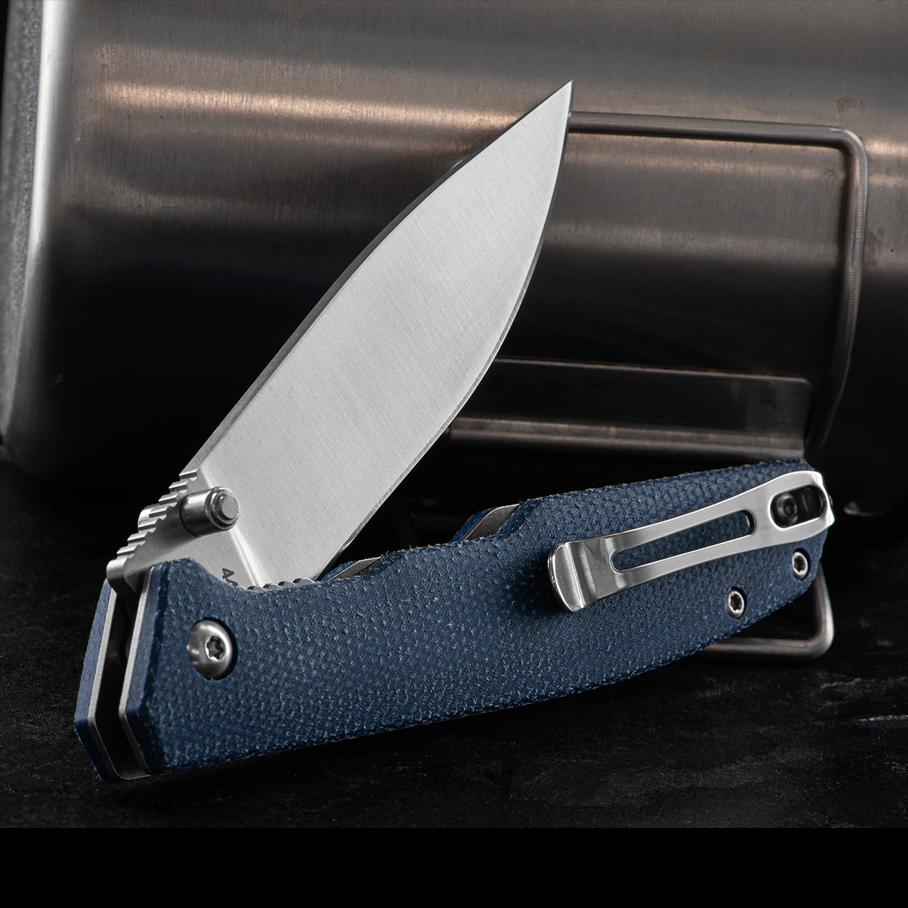 The handle too is perfectly suited to a hard working environment being made from micarta in an attractive blue colour. A removable pocket clip is attached so you can keep your favourite tool close.