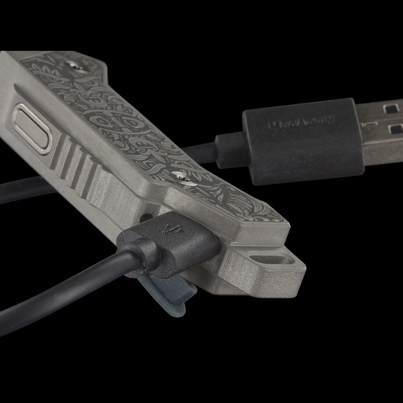The modestly named FL02 is a keychain/pocket light of incredible quality. The body is TC4 Titanium with a hole for your lanyard or keychain. At just 6.7cm long it has an awesome output of 360 lumens with three lower lumen levels and a 360 lumen strobe. It is charged via a USB connection and will attain full power after 100 minutes of charging (a USB connector is supplied).