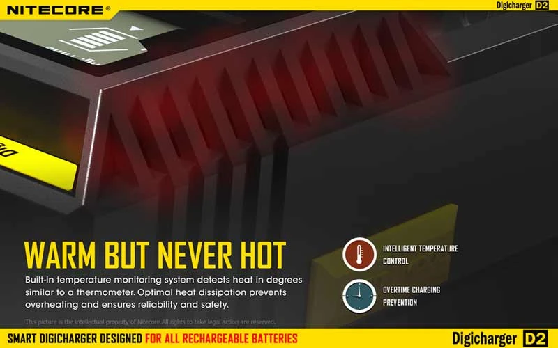The Nitecore D2: The world’s most advanced fully-automatic digital charger. It’s as simple as insert, detect and charge.