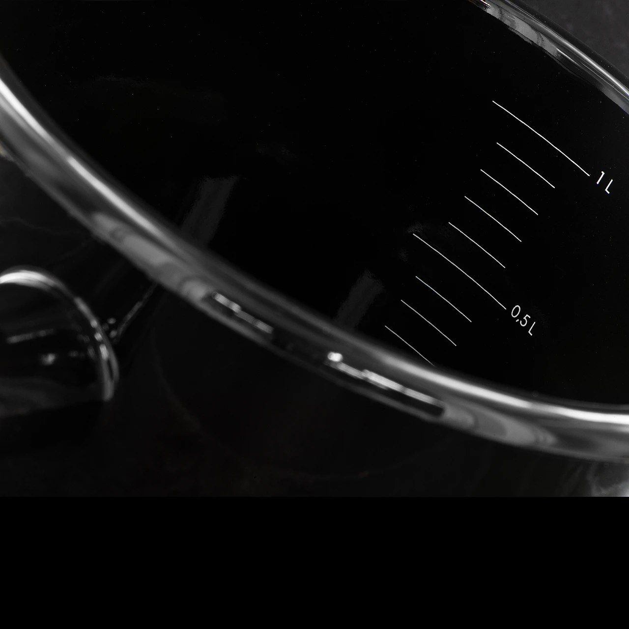 Thanks to the scale on the inside of the pan, you can also measure your ingredients accurately. The surface is scratch-resistant and easy to clean.Â