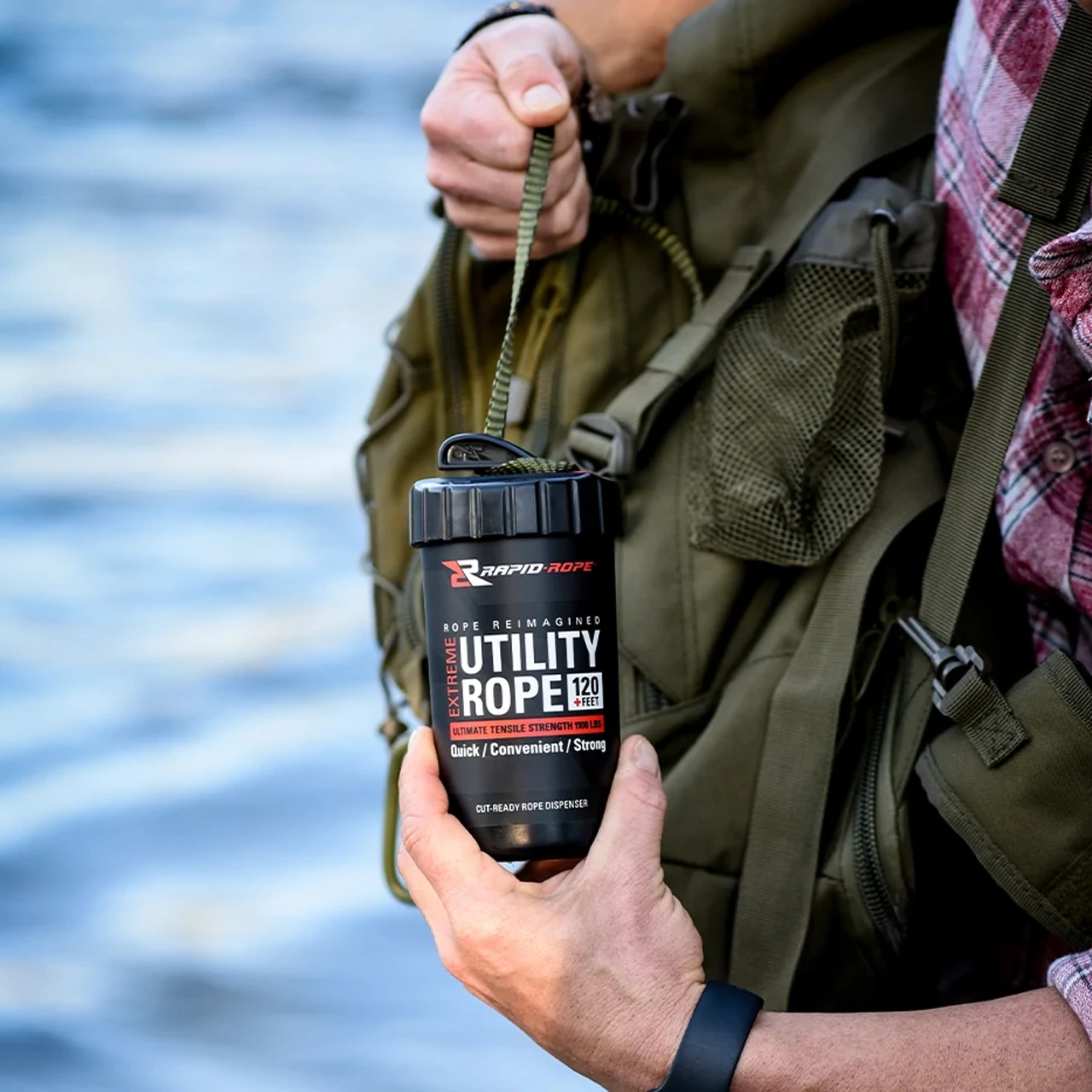 If you’re sick and tired of needing some cord at home or on an adventure only to find it all tangled up, you’re going to love Rapid Rope in a can! Rapid Rope gives you 36 metres (120 feet) of 500kg (1,100 lb) test cord in an easy to deploy canister at your fingertips.Â