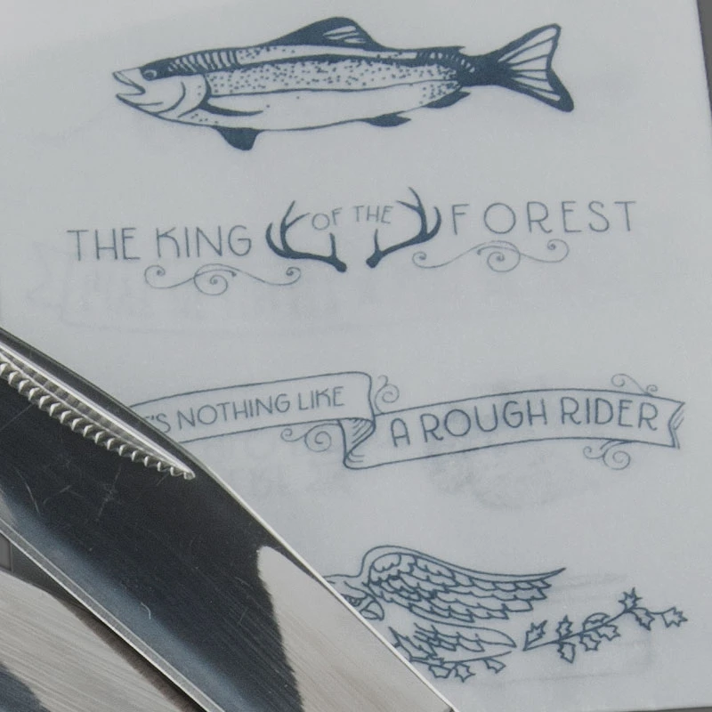 Scrimshaw is the name given to scrollwork, engravings or carvings done in bone or, once upon a time, ivory. This Rough Rider Scrimshaw set includes all you need to create your own designs using the Rough Rider White Bone Trapper knife included. It is even supplied with a guide book and thorough instructions for the beginner.