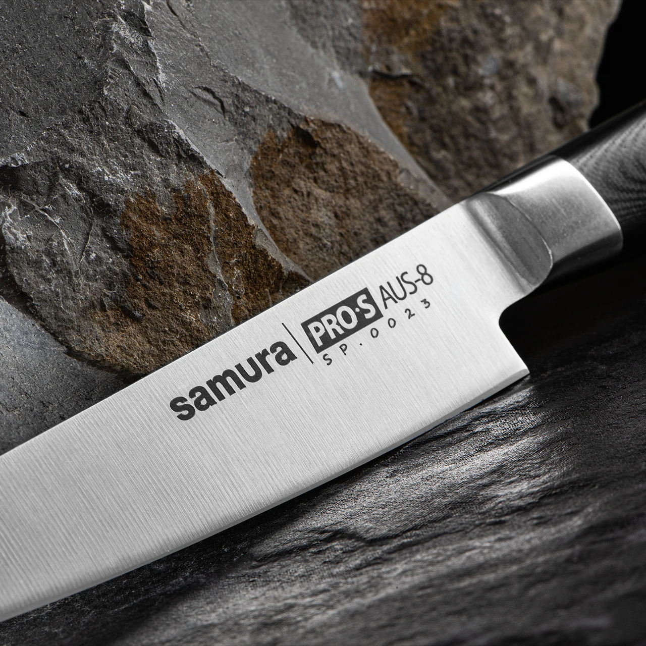 For cooks who value comfort as highly as performance, the reliable PRO-S series features multi-functional knives that smartly fit into any existing kitchen arsenal. A favorite of Samura manufacturers, PRO-S knives are full-tang, single-ply AUS-8 steel, which maintains its sharpness even after years of regular use.