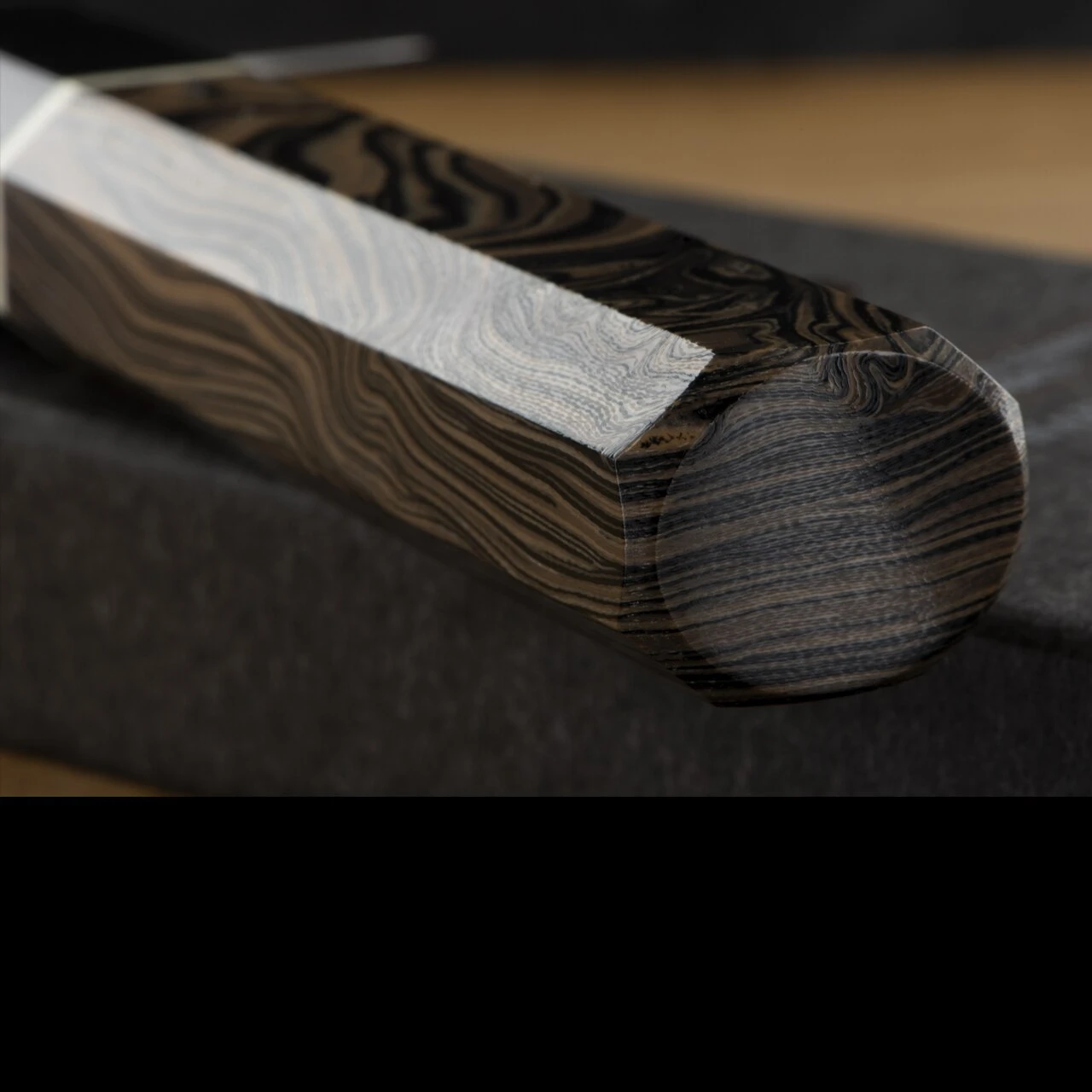 The elite blades of the Itamae Series are paired with traditional “wa-style”(octagonal) handles made from stunning burl G-10 and highlighted with black G-10 ferrules. Created for those who demand the very best, the Itamae series faithfully captures the spirit of Murray Carter’s coveted handmade kitchen knives and sets a new standard in high-performance kitchen cutlery.