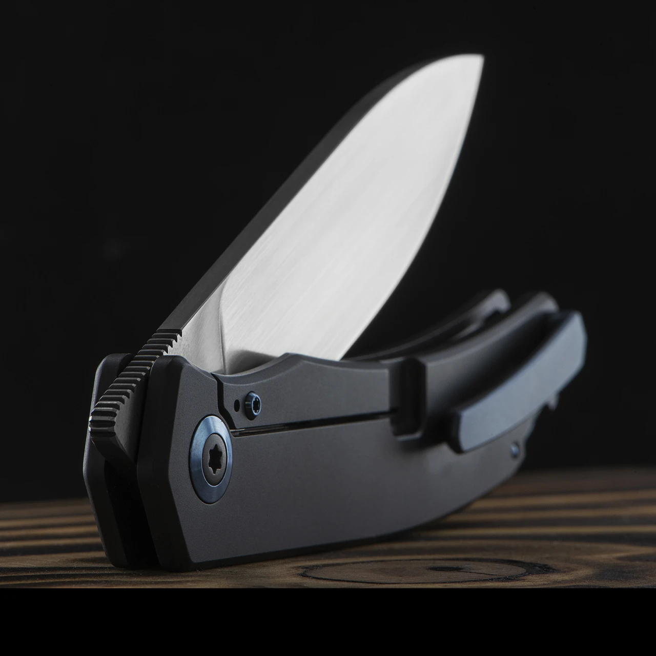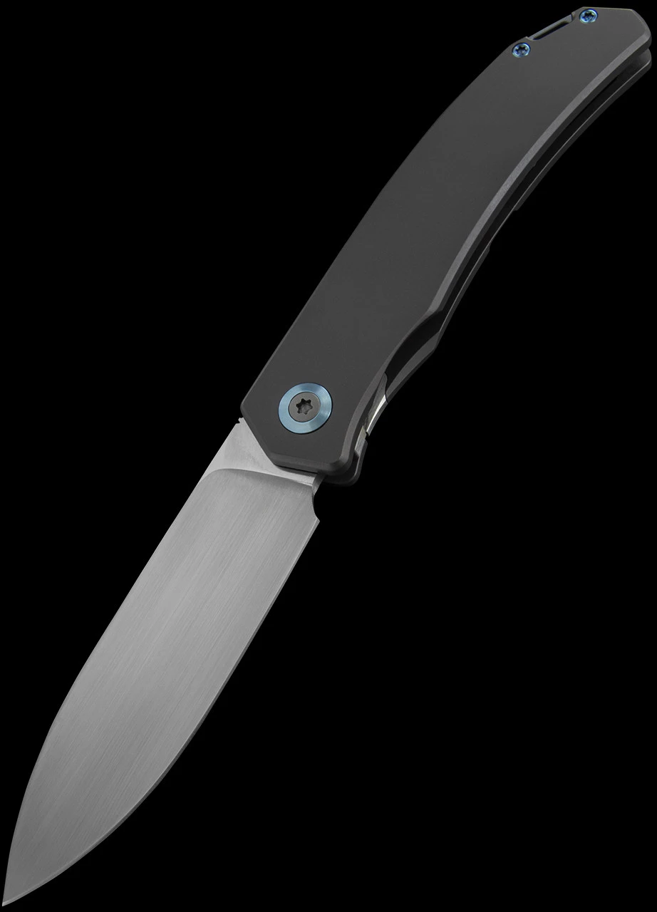The Urban XL model features a M390 stainless steel blade with an exceptionally smooth opening thanks to the ceramic ball bearing pivot. It locks securely into place with a frame lock mechanism cut into the handle. The handle is Grade 5 Titanium with a blue anodised Titanium pocket clip attached. The hardware is polished blue anodised Titanium.Â